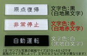 文字数が多い場合は、①文字間隔を縮め、②文字を縦長文字に調整し(原則として最小70%・縦1:横0.7)、③文字を小さくして、銘板に記入文字ができるだけバランス良く収まるように調整します。