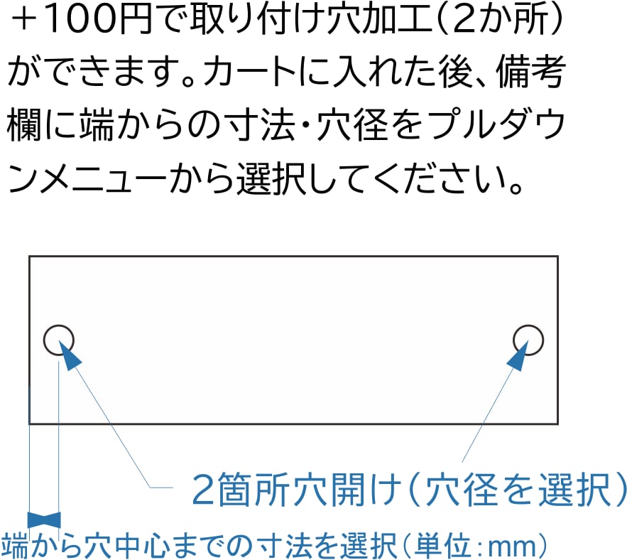 裏面に両面テープ付き/ねじ止め・リベット止め用穴あけ(+100~200円)/裏面両面テープなし