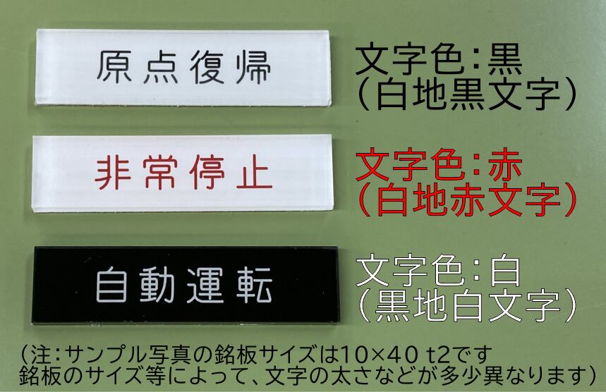 「白吹き(しろふき)」と呼ばれる裏面に熱硬化塗装した透明アクリル板に裏面から彫刻後、墨入れをしていますので、文字が消えにくく、安心して使用していただけます。
